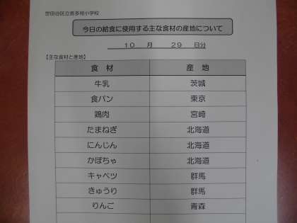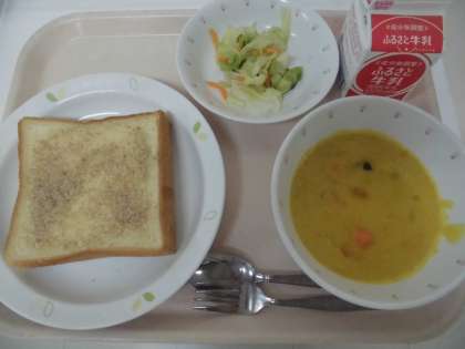 ハロウィンにちなんで給食は「パンプキンシチュー」です。かぼちゃは、カロテン、ビタミンA、C、B1、食物繊維など、たくさんの栄養素を含んでおり、その栄養の高さは野菜のなかでもトップクラスといわれています。