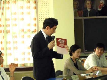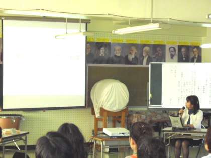 音楽室で、校医の先生からお話がありました。(9月15日)