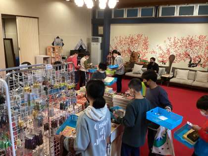 お楽しみのお土産タイム。楽しそうに選んでいます。