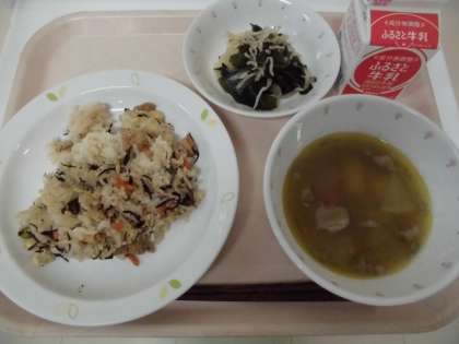 豚汁には、だいこんやにんじん、ごぼう、旬のさつまいもなど、7種類の食材を使いました。具だくさんで栄養まんてん、体も温まります。