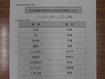 ザ・和の献立ですが、喜多見小の子どもたちは和食が大好きです。今日も4時間目終わりにサンプルを見た子どもたちから「おいしい給食だ!」「よっしゃー!」といった声が聞こえてきました。