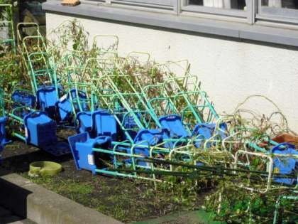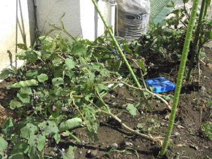 台風の影響で、1年生のアサガオや2年生の作物が倒れてしまいました。(9月22日)