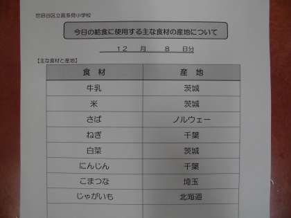 12月8日の給食