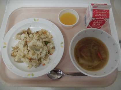 旬のごぼうをたっぷり使ってピラフを作りました。バターの香りが食欲をそそります。