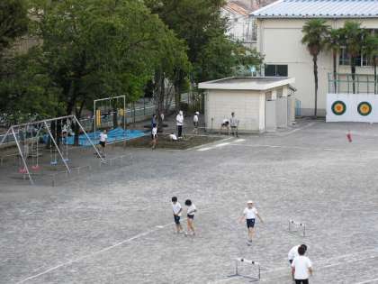 連合運動会に向けて、ハードルと走りはばとびの練習をしました。(10月6日)