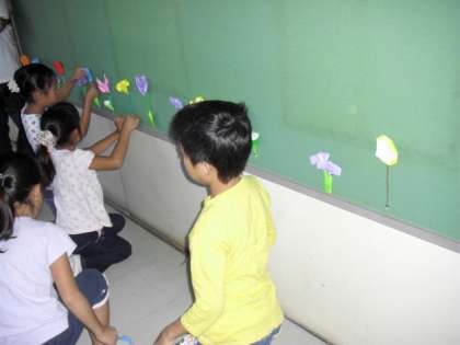 職員室前の掲示板をきれいに飾っています。(10月7日)
