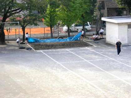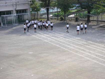 連合運動会に向けて朝練をしています。校庭で、徒競走と走りはばとびの練習をしました。(10月11日)