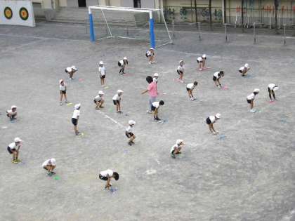 3組と4組が校庭で短なわの学習しました。(10月11日)