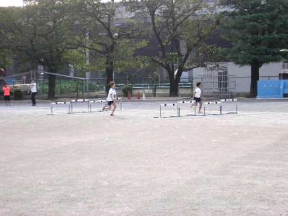 朝連で、ハードルの練習をしました。(10月12日)
