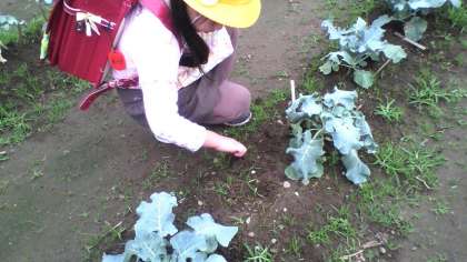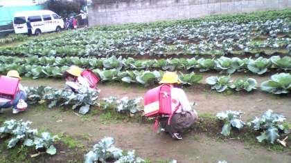 自分が植えたキャベツの成長を、毎日帰りに観察しています。(10月24日)