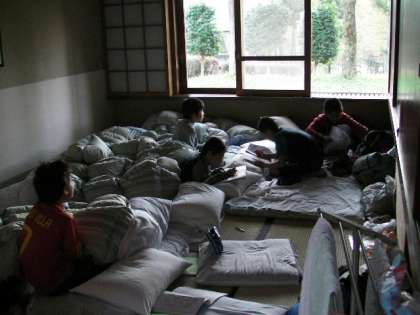起床の時間になりました。さっそく検温をしたり顔を洗ったりする子どもがいました。(10月27日6時00分)