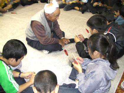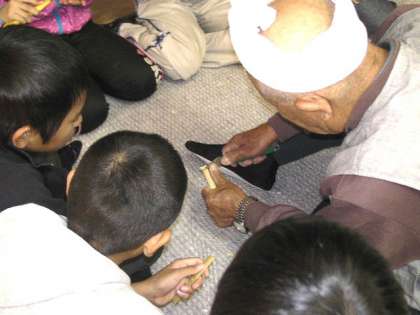 一人一人が体験活動を行いました。竹細工では、講師の方に竹とんぼ作りを教えていただきました。(10月27日)