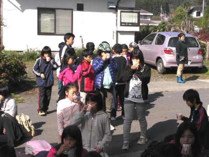 川場移動教室(5年生) 公開日 2011/10/29 更新日 2011/10/29 5年生 村めぐりの途中で、りんご園の方から川場の気候や産業などをお聞きしました。その後、しぼりたてのりんごジュースを飲みました。とてもおいしかったです。(10月28日11時)