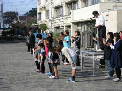 栄養実習生のあいさつの後、子どもたちの表彰がありました。(10月31日)