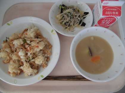 喜多見小の定番メニュー「こぎつねごはん」、子どもたちもお気に入りのメニューです。朝から嬉しそうに話す様子や、サンプルケースを見てガッツポーズする姿が見られました!