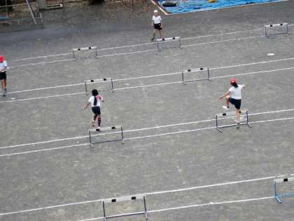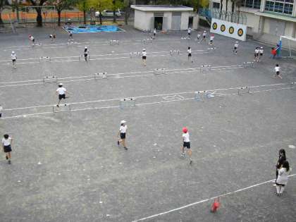 ハードルを学習しました。リズムに合わせて跳びこえる練習をしました。(11月15日)