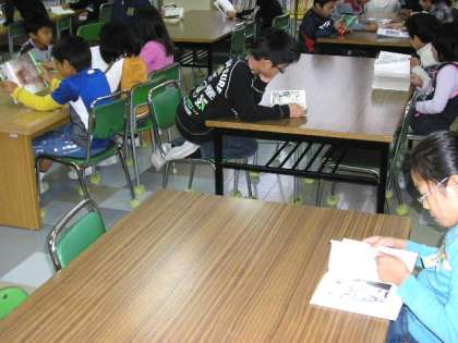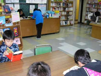 雨が降っていたので、図書室では本を読みに来た子どもがたくさんいました。(12月1日)