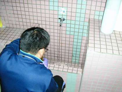 子どもたちが学習をしている間、主事さんは校舎内の清掃をしています。今日は、子どもたちが使うすべての流しを掃除していました。(12月2日)