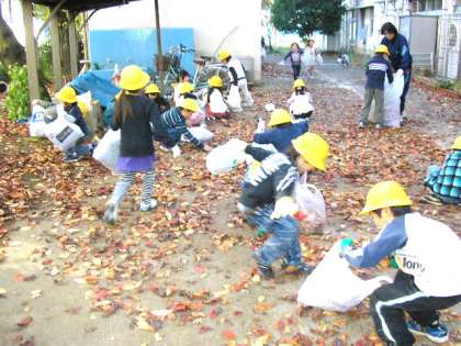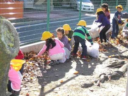 全員で、敷地内にある落ち葉をひろいました。(12月5日)
