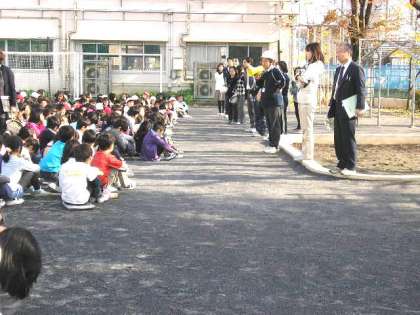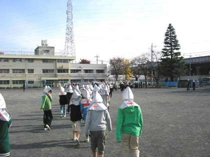 放送機器が使えないという想定で行いました。主事さんが鐘を校舎内で鳴らしながら知らせました。(12月7日)