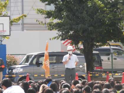校長先生からは、防災の日がなぜ9月1日なのか、先日接近した台風など災害に対しての備え、避難の大切さのお話がありました。