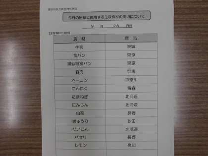 9月28日の給食