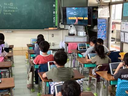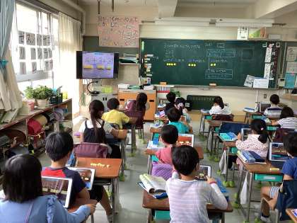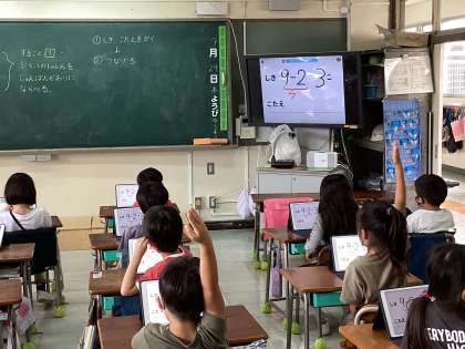 ブロックとタブレットを使用して、算数の授業を行いました。