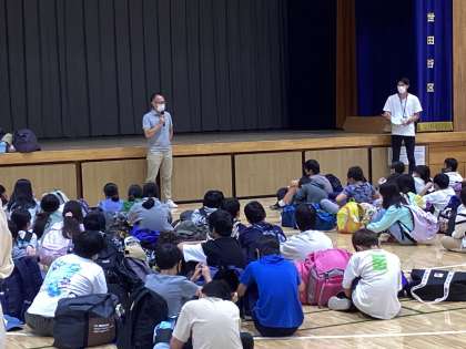 【5年生】帰校式 公開日 2022/10/07 更新日 2022/10/07 5年生 5年生を乗せたバスが学校に帰ってきました。 校長先生からのお話、児童代表の話がありました。 2日間ではありますが、児童の成長を感じることができました。 5年