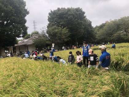 次太夫掘公園に稲刈りに行ってきました。天候が心配されましたがなんとかもってくれてよかったです。