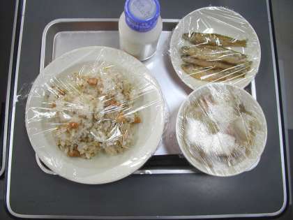 ご飯に魚、味噌汁というメニューでした。すべて人気でおかわりする人がたくさんいました。(12月15日)