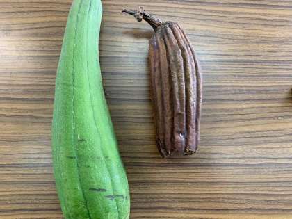 1学期に植えたヘチマが大きく成長し、種もできるようになりました。