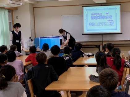 【4年生】水道キャラバン 公開日 2022/10/15 更新日 2022/11/30 4年生 水道局から委託を受けている方々が学校にいらっしゃって、水道キャラバンを行っていただけました。 水源林やダムの秘密や飲料水になるまでの過程、実験など子どもたちが興味をもてそうなコンテンツがたくさんありました。 1学期に学習したことの復習になりました。 4年