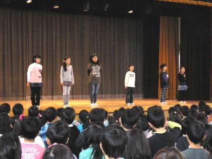 児童代表が、2学期を振り返った言葉を発表しました。(12月22日)