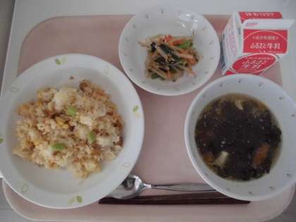 チャーハンには焼き豚を使い、本格的に仕上げています。中華風の献立は子どもたちに人気なので、完食のクラスもたくさんありました!