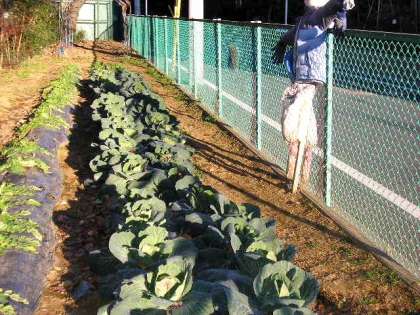 キャベツが小ぶりながら育っています。(1月10日)