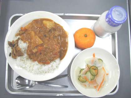 3学期になって最初の給食はカレーライスでした。友だちと楽しく給食をしていました。(1月11日)