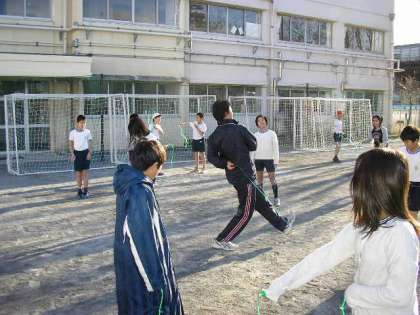 朝の体育朝会で短なわをしたので、校庭で短なわをする子どもたちがたくさんいました。(1月12日)