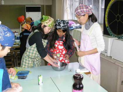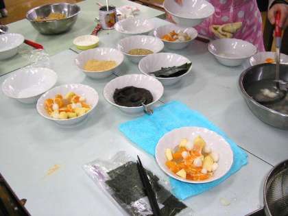 班ごとに分担して白玉だんごを作りました。(1月20日)