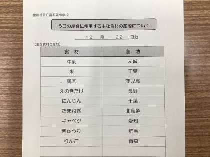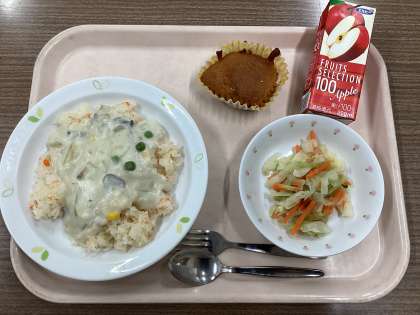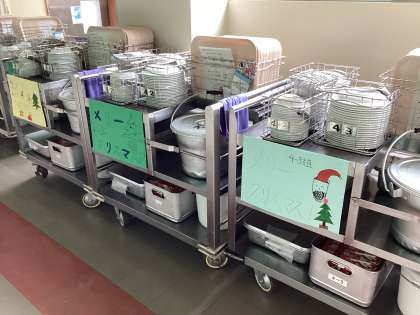 12月22日の給食 公開日 2022/12/22 更新日 2022/12/22 給食 (今日の献立) ・キャロットライス クリームソースがけ ・フレンチサラダ ・セレクトケーキ ・りんごジュース 2学期最後の給食です。セレクトケーキでは、チョコ、いちご、キャラメルの3種類から好きな味を選びました。給食委員会の子どもたちが書いたクリスマスカードも大好評でしたよ♪ 年末年始はいろいろなイベントがありますが、しっかり食べて3学期も元気に登校してきてくださいね!