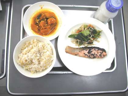 今日は、和食でした。カボチャをおかわりする子どもが多かったです。(1月26日)