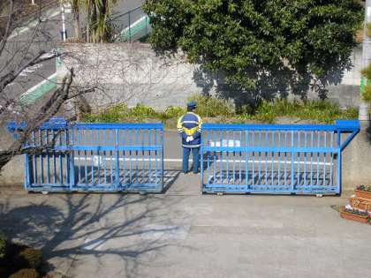 毎日、子どもたちが授業をしている間、正門には警備員の方が見てくださっています。(2月10日)
