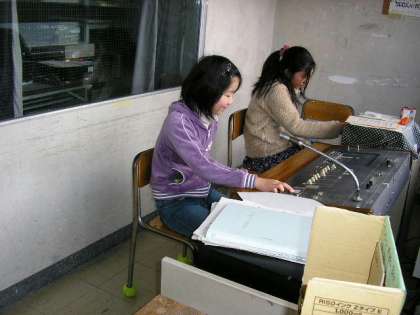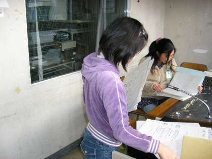 朝の朝会では、放送室でマイクの音量や音楽を担当しています。(2月13日)