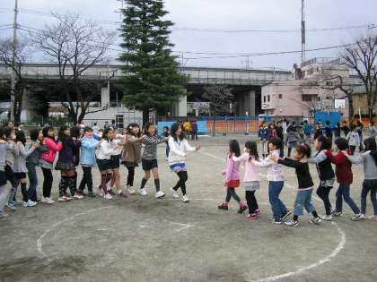 校庭でじゃんけん列車をしました。みんな楽しく行っていました。(2月16日0