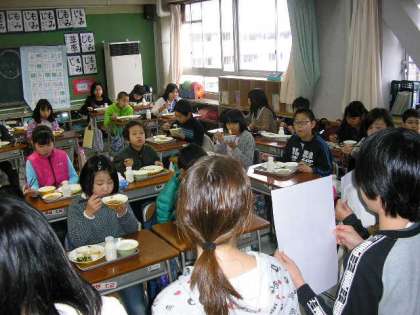 給食中に、委員会の子どもたちが各クラスにお知らせに行きました。(2月16日)