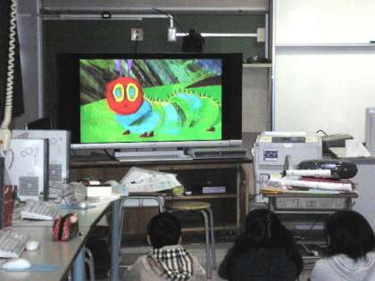 はらぺこあおむしの動画を見て、班ごとに考えた物語の練習をしました。(2月16日)