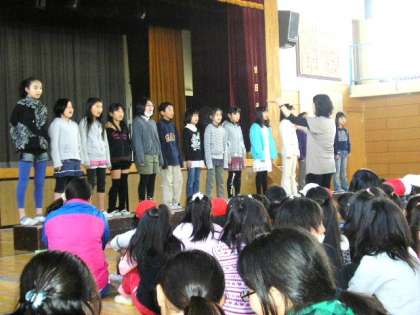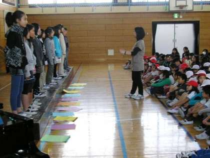 中休みに、体育館で音楽クラブの発表がありました。(2月22日)