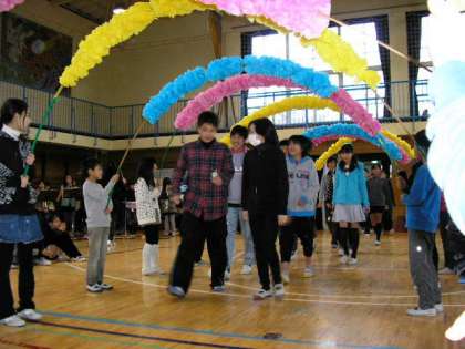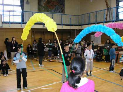 金管バンドの曲で、6年生が入場してきました。(3月5日)