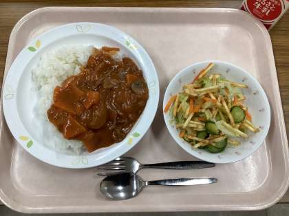 6月12日の給食 公開日 2023/06/12 更新日 2023/06/12 給食 (今日の献立) ・ハヤシライス ・じゃがいものパリパリサラダ ・牛乳 ハヤシライスは、たまねぎをじっくり炒めて作っています。野菜の甘みとうま味が出て、コクのある味になります。