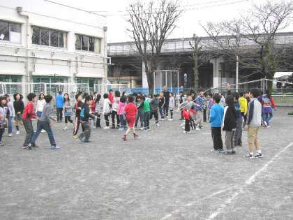 今年度最後の体育朝会でした。校庭で大なわをしました。(3月8日)