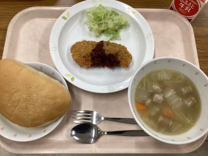 6月30日の給食 公開日 2023/06/30 更新日 2023/06/30 給食 (今日の献立) ・セルフフィッシュサンド ・ポトフ ・牛乳 今日は「メルルーサ」という白身魚を揚げて、フィッシュフライを作りました。クセのない淡白な味なので、揚げ物などによく合います。子どもたちも自分で上手にサンドして食べていました。